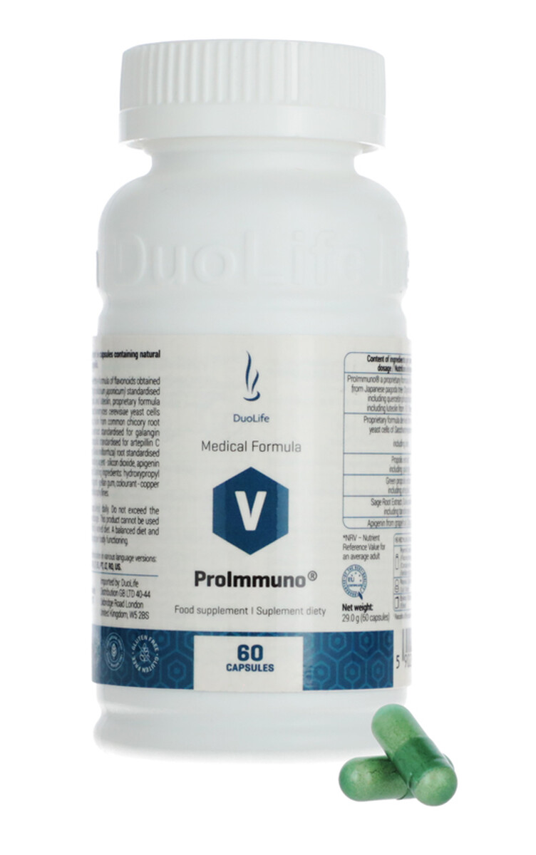 DUOLIFE ProImmuno je výživový doplněk navržený na podporu imunitního systému, ochranu buněk před oxidačním stresem a podporu správného dělení buněk. Díky unikátní kombinaci flavonoidů, rostlinných extraktů, propolisu a organického zinku pomáhá posilovat přirozené obranné mechanismy organismu a přispívá k celkové vitalitě.