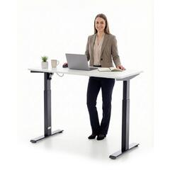 Elektrický výškově nastavitelný stůl pro střídavou práci v sedě a stoji. Paměť 3 výškových pozic a časovač usnadňují používání a zvyšují komfort i produktivitu.