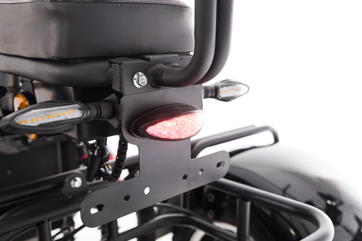 Chopper UNIZDRAV PRO Trike je vybaven velkým, snadno čitatelným LED displejem, který poskytuje přehled o rychlosti, ujetých kilometrech, stavu baterie a aktivních světlech nebo směrovkách.