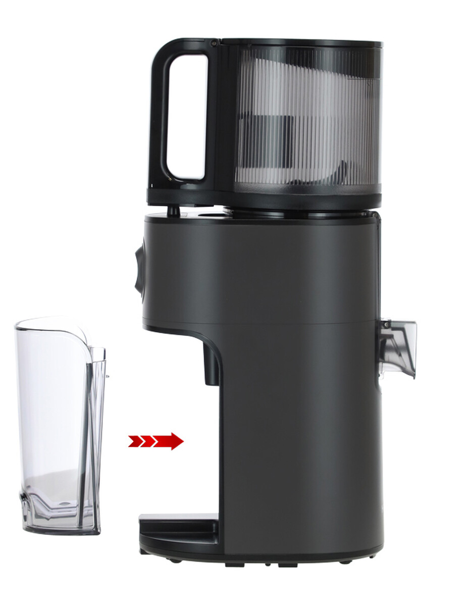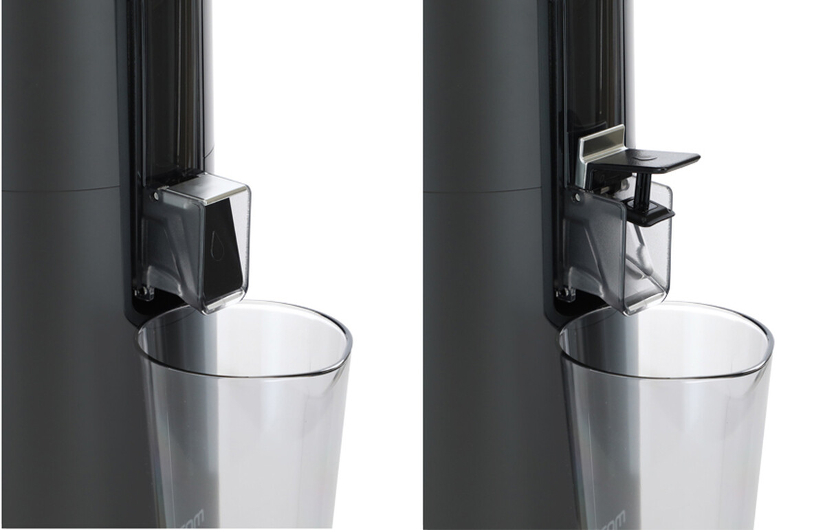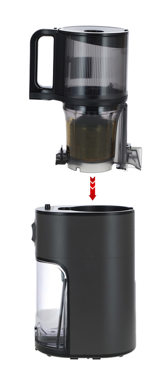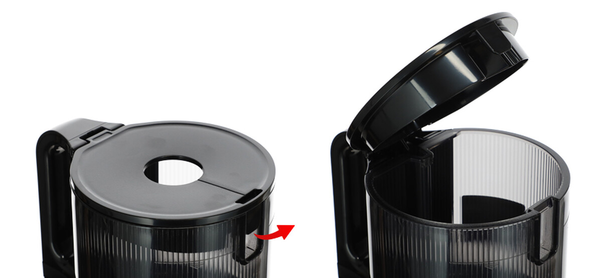 Přístroj se montuje a demontuje jednoduchým intuitivním způsobem. Kryt zásobníku je možné bezpečně otevřít a zavřít kdykoli během používání – po jeho otevření se provoz odšťavňovače automaticky zastaví a po zavření se proces odšťavňování opět obnoví. Kromě toho se na víku nacházíí malý otvor, přes který můžete přidávat další suroviny i během chodu motoru bez nutnosti otevírání.