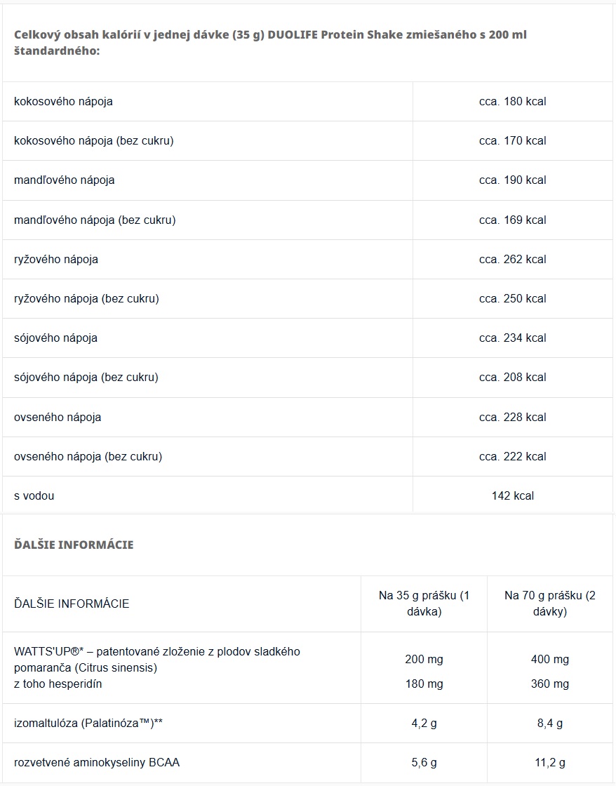 Doplněk stravy DUOLIFE Protein Shake neobsahuje žádné umělé konzervační látky ani GMO a je vhodný pro vegetariány. Je zařazený do Kolínskeho seznamu (Cologne List®) – seznamu výrobkoů s minimalizovaným rizikem dopingu.