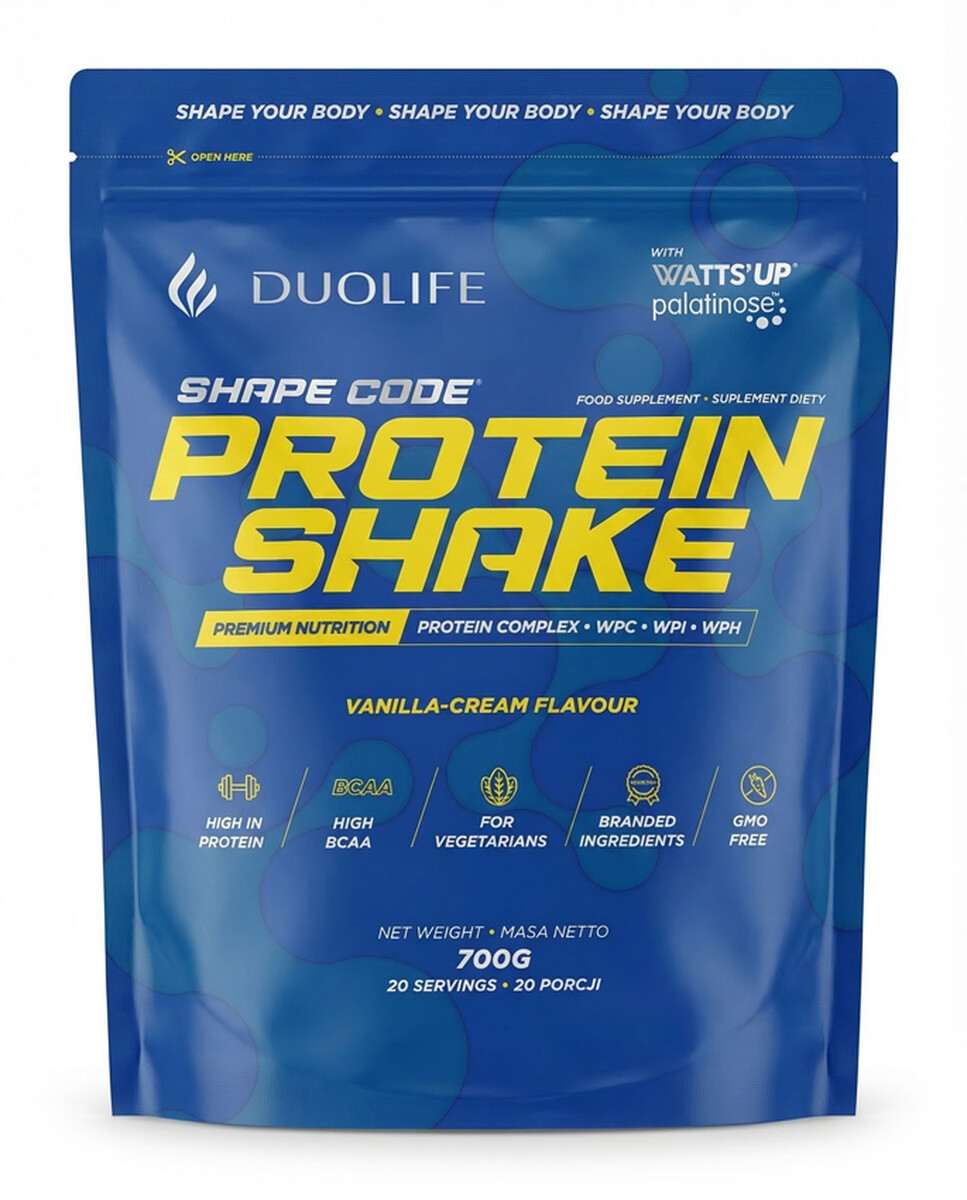 DUOLIFE Protein Shake je výživový doplněk v práškové formě určený pro přípravu chutného proteinového nápoje. Protein Shake obsahuje kombinaci tří druhů bílkovin, které přispívají k růstu a udržení svalové hmoty a zároveň podporují odolnost a zdraví kostí.