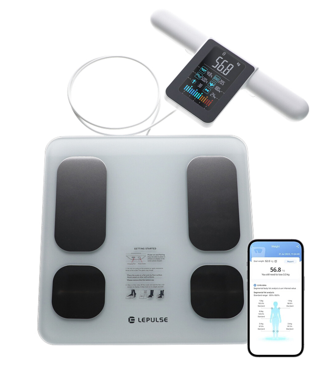 Profesionální osobní váha s rukovětí je vybavená 8 vysoko citlivými bio-elektronickými odporovými senzory, které zajišťují přesné a rychlé měření všech parametrů vrčetně analýzy 5 tělesných segmentů.