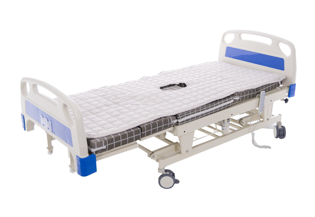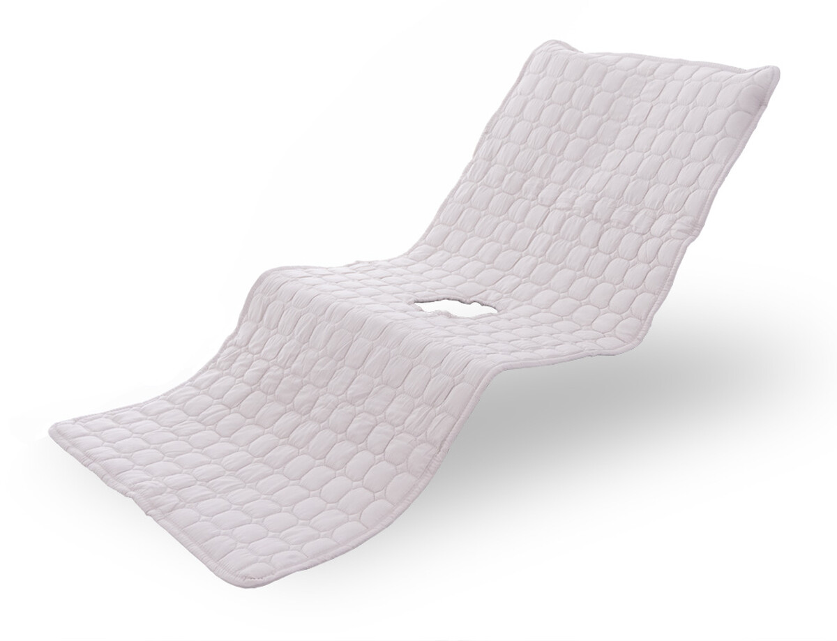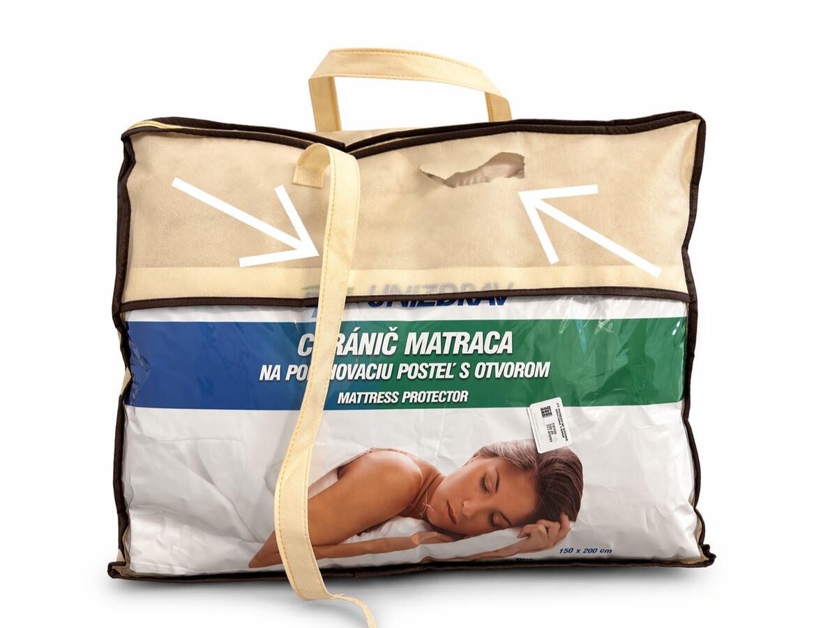 Podložka na matraci s integrovaným otvorem na toaletu zjednodušuje péči o hygienu pacienta, lůžka i jeho okolia.