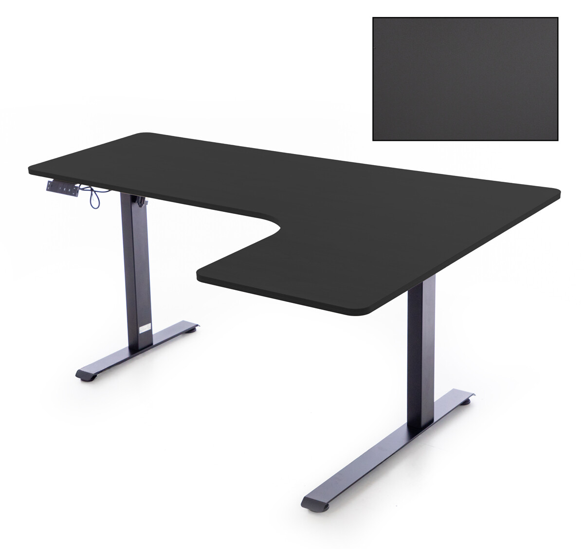 Elektrický výškově nastavitelný stůl (pravý roh) ideální pro střídavou práci v sedě a stoji. Paměť 3 výškových pozic a časovač pro lepší komfort i produktivitu.