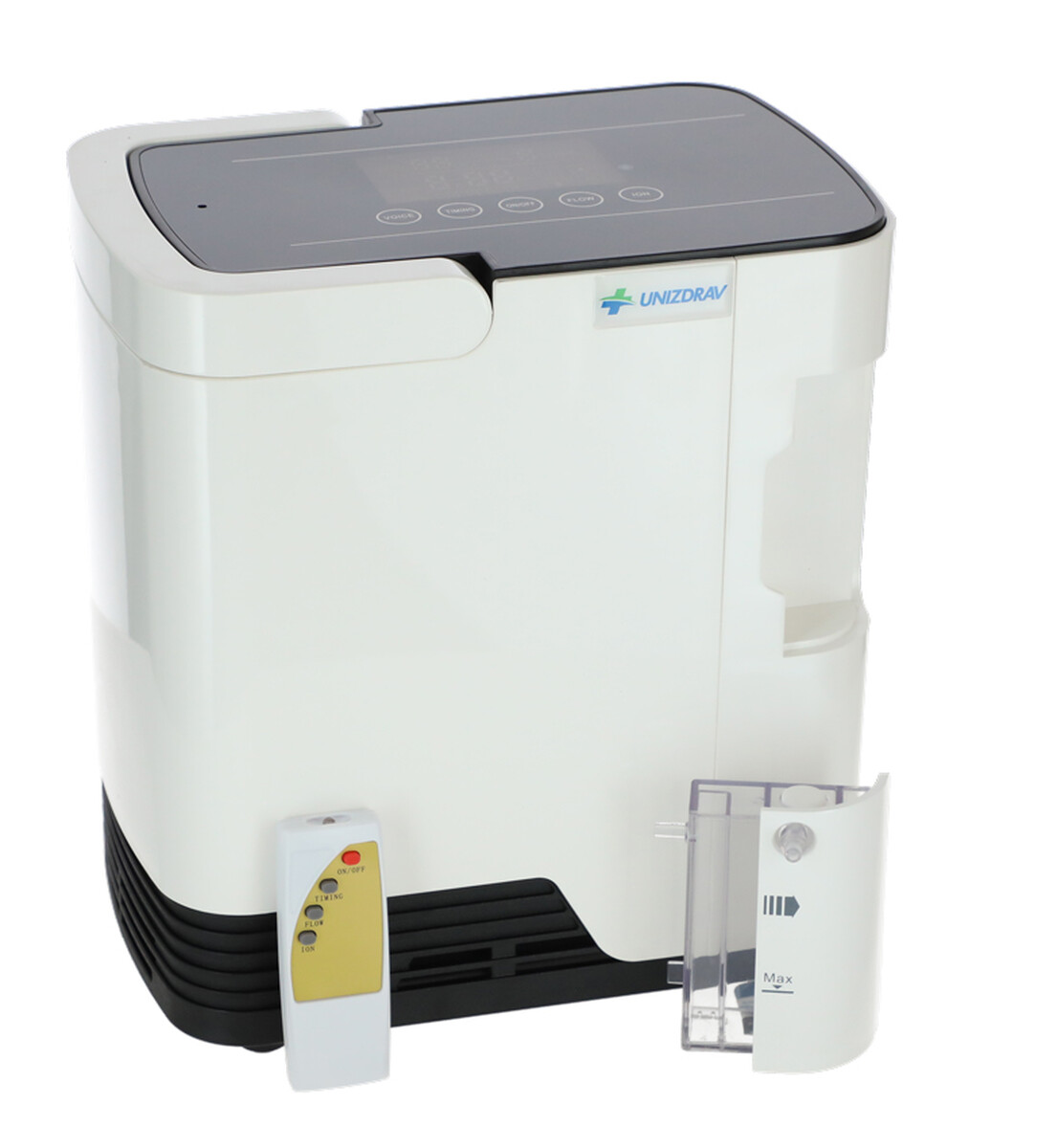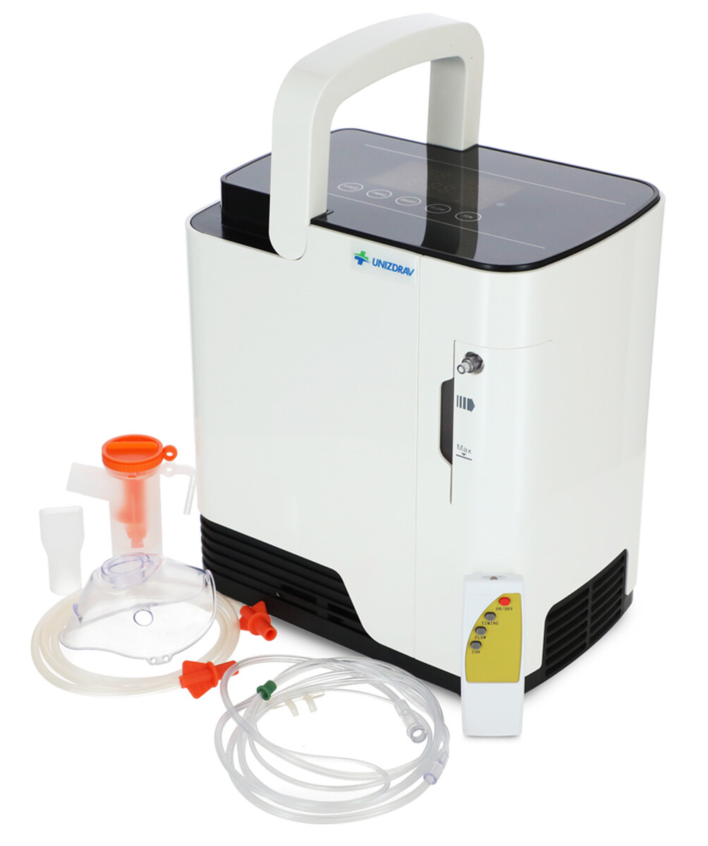 Kyslíkový koncentrátor s hlasovým výstupem UNIZDRAV je kompaktní generátor kyslíku určený k individuální kyslíkové terapii v pohodlí domova. Praktické dálkové ovládání a hlasový průvodce přinášejí pacientům jednoduchou obsluhu zařízení a průběžné informování o aktuálním stavu provozu.