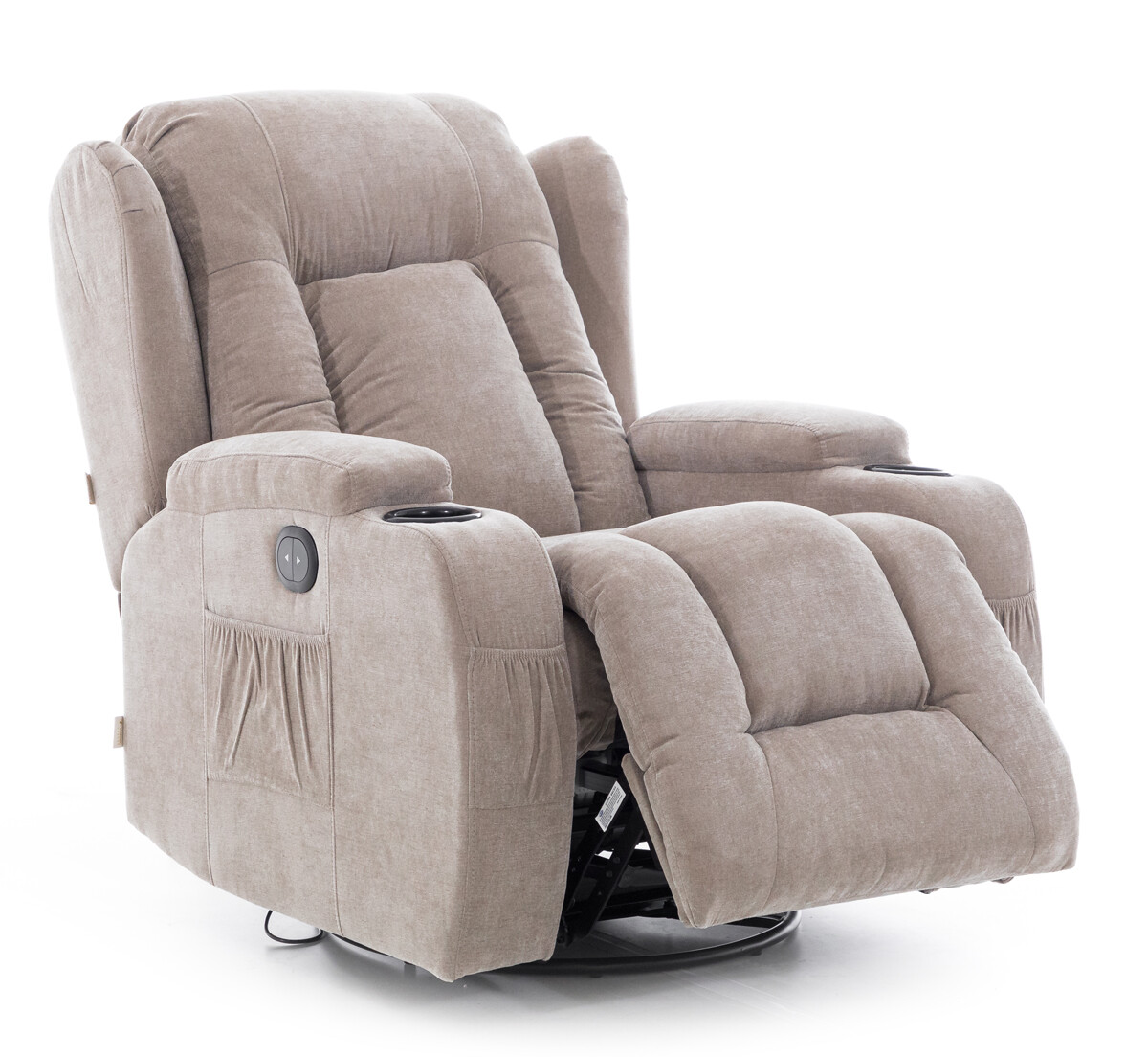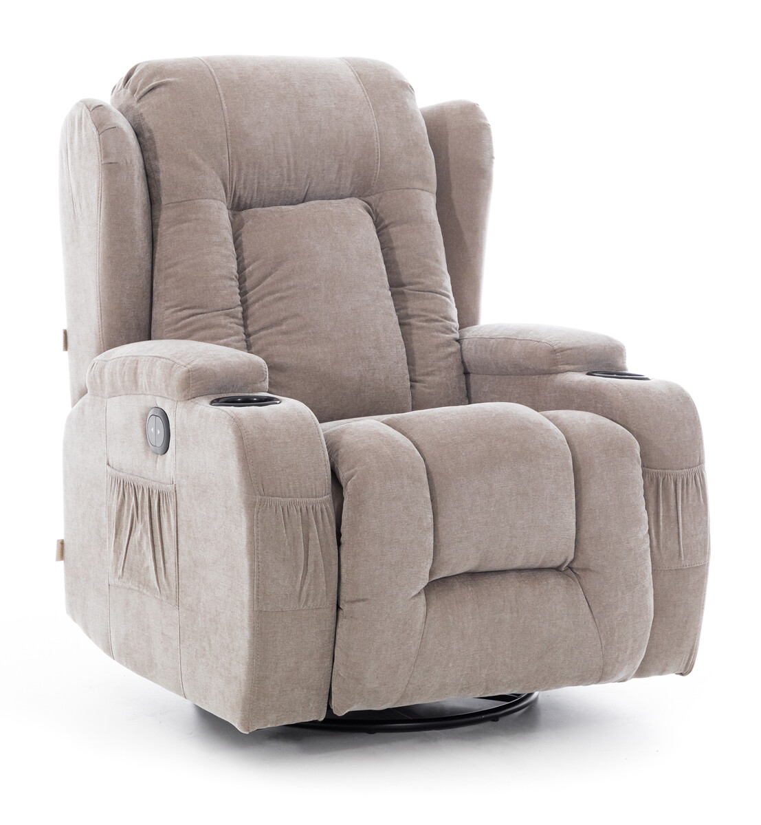 Při designování relaxačního polohovacího křesla se myslelo i na úložné prostory. Na obou stranách opěrek jsou k dispozici plastové otvory na nápoje a níže další 4 kapsy k uložení ovladačů a jiných drobností.