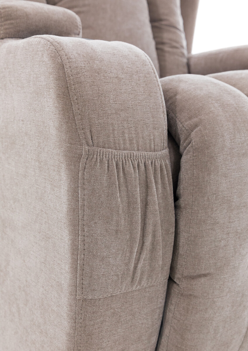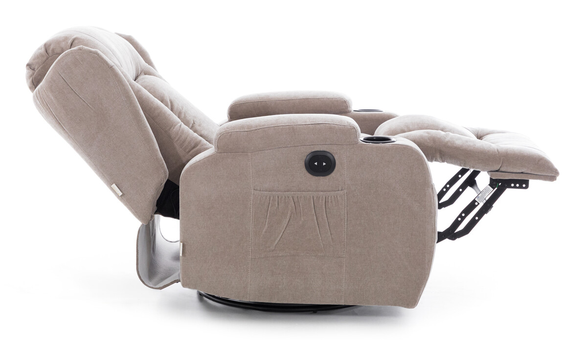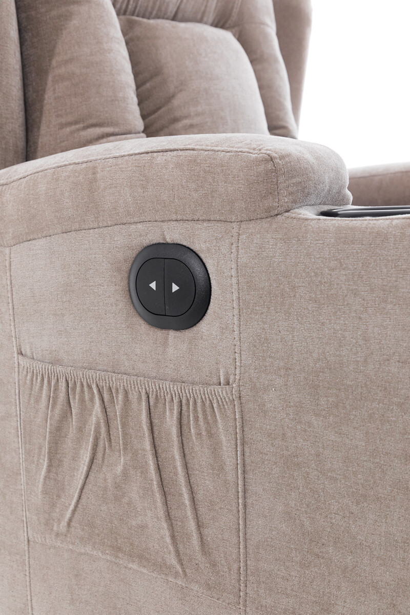 Díky vyhotovení v tmavě béžovém látkovém dekoru se bude vyjímat v každé místnosti. V základní poloze poslouží jako klasické interiérové křeslo ideální k odpočinku, sledování televize nebo čtení knih a v relaxační ležící poloze se postará o regeneraci a uvolnění svalstva.