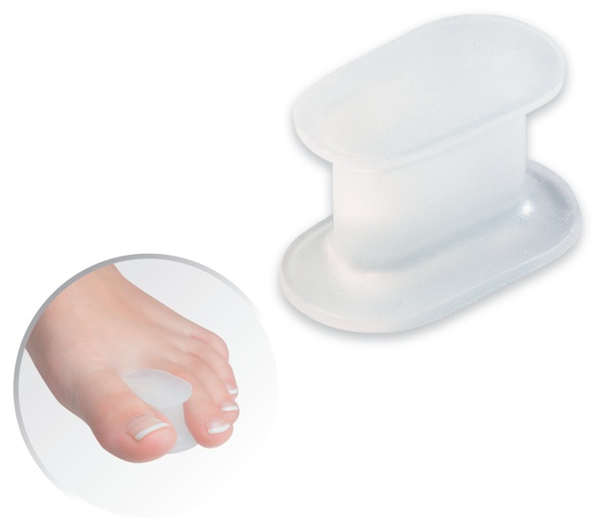 Korektor silikonový čirý ze silikonového gelu slouží především jako oddělovač prstů na nohou při problémech vbočený palec či meziprstních mykóze. Chrání prsty před odřeninami, rovná jejich a koriguje vybočený palec. Jeho fixace je zvýhodněná oboustranným překrytím nahoře i dole.